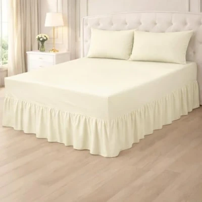 Plain Poly cotton Extra Deep Frilled Valance Fitted Sheets, Easy Case Sheets in 14 Attractive Colors, Percale Quality Sheet (Cream, Super king)