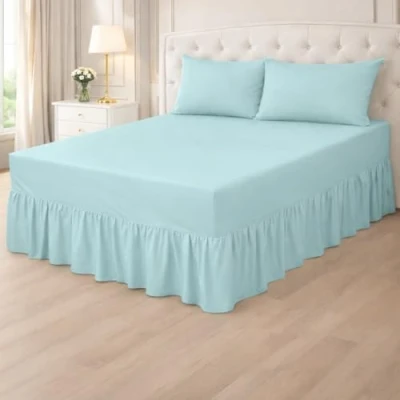 The long frills couples with smooth & fade resistant fitted sheet, covers your bed perfectly and conceal the under-bed storage area giving your room a neat and tidy look. Soft and smooth fitted frill valance sheet. Equal blend of cotton & polyester, Combining the luxury, Softness and fine quality of cotton with the easy-care qualities of polyester that requires a minimum of ironing, these sheets offer comfort and convenience and are easy to care for. Box Fit: 25cm Valance Frill: 40cm Capable of Withstanding Wear and Tear or Decay, Durable Fabric Dimensions:: Single : 90x190cm+25cm+40cm approx, Double : 137x190cm+25cm+40cm approx, King Fitted : 150x190cm+25cm+40cm approx, Super king : 180x200cm+25cm+40cm approx. Material: Soft Touch Polycotton. 50% Polyster - 50% Cotton All the colors and sizes are approximate. There may be slight variation b/w item and picture. Package contains only 1 fitted valance sheet. Care Instructions – Machine washable, tumble dry and iron at low temperature, wash similar colors together. Do not bleach.