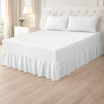 Plain Poly cotton Extra Deep Frilled Valance Fitted Sheets, Easy Case Sheets in 14 Attractive Colors, Percale Quality Sheet (White, Single)