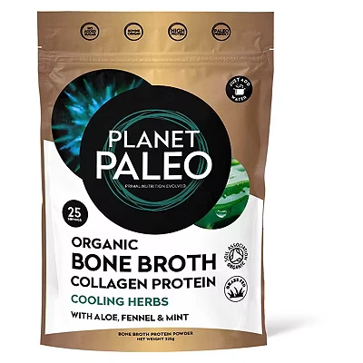87 Advantage card points. Planet Paleo Organic Bone Broth Protein Powder Cooling Herbs 225g FREE Delivery on orders over 45 GBP.