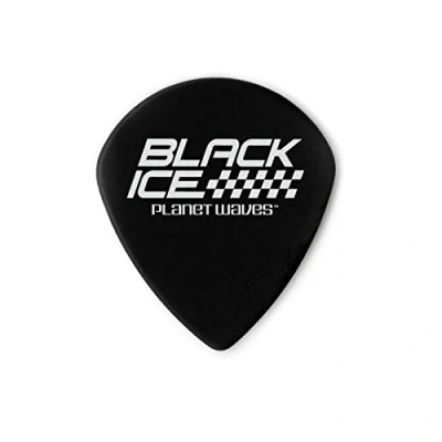 ble material delivers strength, resiliance and resists abrasion while providing balanced tone with a bright attack. Grip and rip with Black Ice! 10 pieces jazz shape, ca. 24mm x 27mmcolour: blackmaterial: Duralin (Acetyl/Delrin)light gauge: 0.55mm (.021)Black Ice Guitar Picksfeature a custom oversized jazz shape that is designed for speed picking and where precise articulation is required. Perfect for both rhythm and single note lead work. Black Ice Picks are triple tumbled, creating a soft-touch texture that provides an incredibly smooth surface and a superb grip in any playing conditions. Made from Planet Waves Duralin, this ultra-dura