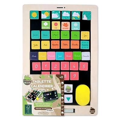 YOUR GAME WITHOUT SCREEN: This fun and educational game will stimulate your child's imagination while developing their skills. He can have fun learning the weather, the seasons, the temperature and the date thanks to the calendar on the front and draw on the back Contents: This set contains 1 tablet, 43 magnets, 1 sponge and 1 set of chalks. It is made of wood to provide all the necessary strength to last over time TIMELESS TOYS: Timeless and essential, wooden games are at the heart of fun, they will allow your children to have fun even in your absence and offers an alternative to screens A great gift: this toy has a French design, it is fun and is ideal for a birthday, party, holiday or any other occasion, offer a fun experience from a young age PLANETE WOOD: Designed especially for children in the respect of the environment, the products combine aesthetics and resistance to offer a lasting and safe experience. Always offer more fun while adopting a natural approach