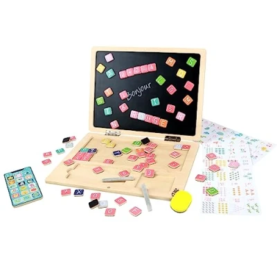 SCREENLESS PLAY - This fun and educational game will stimulate your child's imagination while developing their skills. They can have fun learning letters, numbers and words by pairing them with corresponding illustrations Contents: This set contains 1 wooden computer with 1 slate screen, 78 magnets pieces, 1 smartphone, 1 alphabet and number picture board, 2 chalks and 1 sponge. It is made of wood to provide all the strength needed to last over time Timeless toys: Timeless and must-have, wooden games are at the heart of the fun, they will allow your children to have fun even when you are away and offer an alternative to screens A great gift: this toy with a French design, it is fun is ideal for a birthday, party, holiday or any other occasion, give a fun experience from an early age PLANETE BOIS: Designed especially for children in an environmentally friendly, the products combine aesthetics and strength to provide a durable and safe experience. Always provide more fun while adopting a natural approach, Manufacturer: MGM