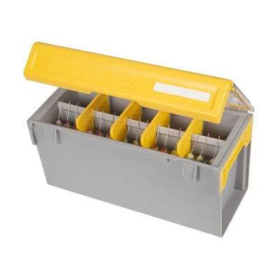 The Edge Master Spinnerbait Box from Plano is a very handy lure tackle box. This innovative tackle box is specially designed for storing spinnerbaits. The clever design keeps the spinnerbaits in place and therefore the hooks will not be damaged. This very sturdy lure box is waterproof and has a transparent lid.