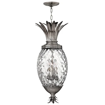 A Hinkley classic, the ornate This collection features exceptional pineapple shaped clear optic glass that makes a noble statement. The Polished Antique Nickel finish has matching candle sleeves and elaborate decorative cast detailing. The intricate and original design adds a special ambiance to the room. Ideal in an extravegant setting. This range offers a variety of matching fittings.