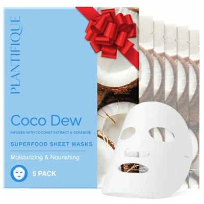 PLANTIFIQUE Facial Sheet Mask Coco Dew 5 Pack Moisturizing Face with Coconut & Ceramide Radiant Skin Nourishing Korean Skincare for All Types