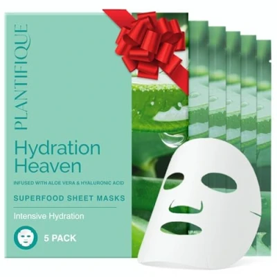 PLANTIFIQUE Facial Sheet Mask Hydration Heaven 5 pack Aloe Vera & Hyaluronic Acid Hydrating Refreshing Face Masks Korean Skincare for Dry or Tired Skin