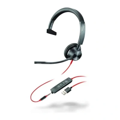 Plantronics Blackwire 3315 Wired, Single Ear (Mono) USB A Headset with Boom Mic (Poly) Connect to PC/Mac via or mobile/tablet 3.5 mm connector Works Teams (Certified), Zoom & more