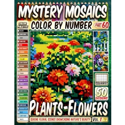 Plants Flowers Mystery Mosaic Color by Number: 50 Serene Floral Scenes Capturing the Grace and Beauty of Nature in Pixel Art