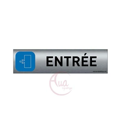 UV digital print on brushed aluminium (no gluing) in Quadri. Eco solvent Dimensions : 200 x 50 mm - Simple standing finish with UV print Material : Dibond Brushed Aluminium - Thickness: 3 mm - Silver Double-sided adhesive on the back: yes. Can be applied to smooth and clean walls Made in France. Aua Signalettic