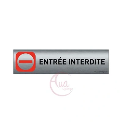 Plaque de porte aluminium brossé imprimé Dimensions 200 x 50 mm Double face adhésif au dos Impression UV directement sur l'aluminium (Pas contre collage) (Entrée interdite)