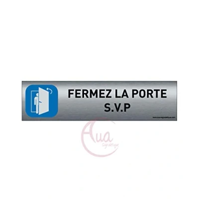 Plaque de porte aluminium brossé imprimé Dimensions 200 x 50 mm Double face adhésif au dos Impression UV directement sur l'aluminium (Pas contre collage) (Fermez la porte)