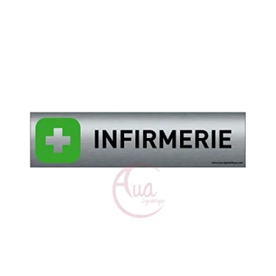 Plaque de porte aluminium brossé imprimé Dimensions 200 x 50 mm Double face adhésif au dos Impression UV directement sur l'aluminium (Pas contre collage) (Infirmerie)