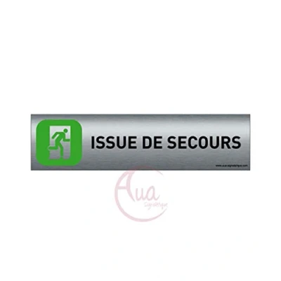 Plaque de porte aluminium brossé imprimé Dimensions 200 x 50 mm Double face adhésif au dos Impression UV directement sur l'aluminium (Pas contre collage) (Issue secours droite)