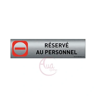UV digital print on brushed aluminium (no gluing) in Quadri. Eco solvent Dimensions : 200 x 50 mm - Simple standing finish with UV print Material : Dibond Brushed Aluminium - Thickness: 3 mm - Silver Double sided adhesive on the back: yes. Apply to smooth and clean walls Made in France. Aua Signalettic