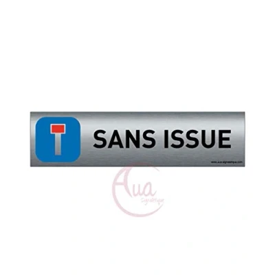UV digital print on brushed aluminium (no gluing) in Quadri. Eco solvent Dimensions : 200 x 50 mm - Simple standing finish with UV print Material : Dibond Brushed Aluminium - Thickness: 3 mm - Silver Double sided adhesive on the back: yes. Apply to smooth and clean walls Made in France. Aua Signalettic