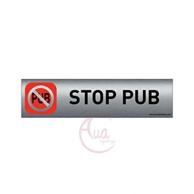 Plaque de porte aluminium brossé imprimé Dimensions 200 x 50 mm Double face adhésif au dos Impression UV directement sur l'aluminium (Pas contre collage) (stop pub)