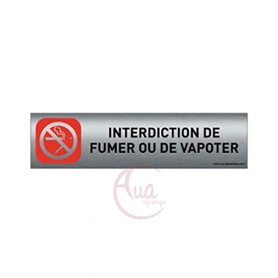 Plaque de porte aluminium brossé imprimé Dimensions 200 x 50 mm Double face adhésif au dos Impression UV directement sur l'aluminium (Pas contre collage) (interdit fumer)