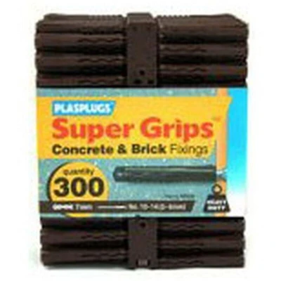 JoybuyThe Plasplugs BP 539 Solid Wall Super Grips™ Fixings Brown (300) are heavy-duty wall plugs designed for concrete and brick, suitable for No. 8-14 screws (4.5-7mm), and come in a 300-pack. Trusted for reliability and easy installation, they're ideal for both professional and DIY use.