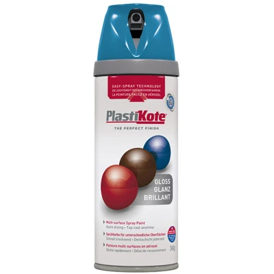 General description This PlastiKote Twist & Spray is a high-quality spray paint designed for DIY and home improvement projects. It provides a smooth, durable, and glossy finish, suitable for various surfaces including wood, metal, plastic, stone, wicker, and crafts. The paint offers consistent coverage and dries quickly, making it ideal for quick project completion. Technical specifications Finish: Gloss Color: Exotic Sea Size: 400ml Drying Time: Touch dry in 30-50 minutes Coverage: Approximately 2.23m² per can Compatibility and accessories Suitable for use on wood Metal Plastic Stone Wicker Craft materials Installation Shake the can well before use Hold the can upright and spray from a distance of about 20-30cm from the surface Apply in even, overlapping passes for a smooth finish Allow each coat to dry before applying additional coats Usage Ensure the surface is clean, dry, and free of dust or grease Spray in a well-ventilated area Use multiple thin coats rather than one thick coat