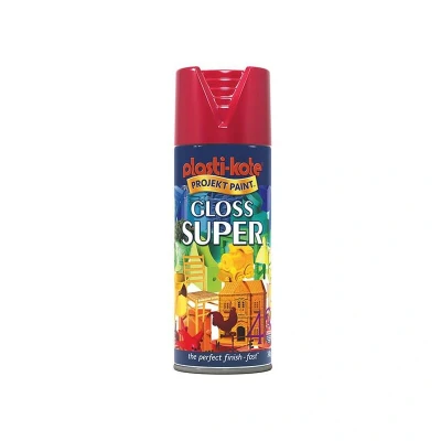General description This PlastiKote Gloss Super Spray Paint is a versatile and durable spray paint, perfect for a variety of decorative projects both indoors and outdoors. It features a tough, hard-wearing finish that is resistant to scratches and is available in a vibrant Bright Red color. Technical specifications Finish: Gloss Colour: Bright Red Size: 400ml Drying Time: Touch dry within 30-50 minutes; recoat within 1 hour Coverage: Approximately 2.23m² per 400ml Compatibility and accessories Suitable for: Aluminium, fibreglass, glass, iron, masonry, metal, paper, papier-mâché, plastic, steel, stone, terracotta, wicker, and wood Not suitable for: High-impact styrene, leather, Styrofoam, and vinyl Other information UV absorbent and water-resistant Protects against rust Fast-drying Available in many colours