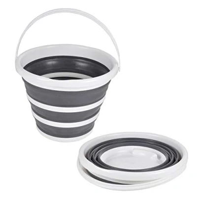 Practical: it folds up after use and can be stored easily. Space-saving. This bucket folds and unfolds easily thanks to its double plastic ring.
