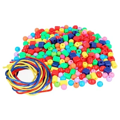 Plastic beads mix of shapes and colors 10 mm. 650u. approx. and 6 threads Bag