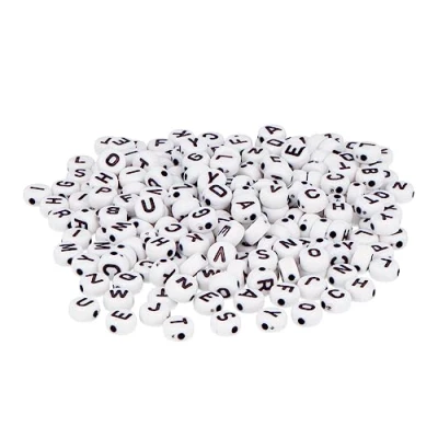 Plastic Beads Round Letters Black White 7 mm. 1200u. Pot
