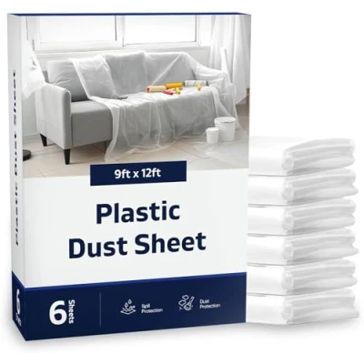 Plastic Dust Sheets for Decorating Pack of 6 Polythene Sheeting Waterproof 3.6 X 2.7m (12 9ft) Floor Covering Painting Large to Cover Furniture, & DIY Projects