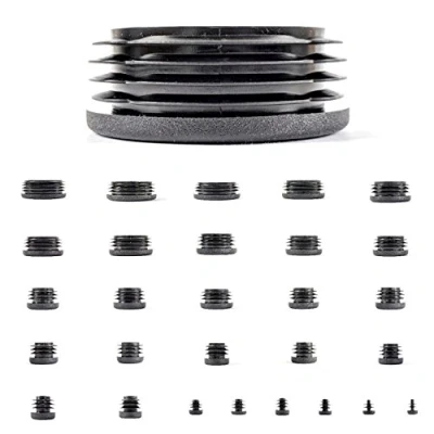 Ribbed plastic inserts for round tubes. MADE IN GERMANY Provides a smooth sliding surface to your tube ends. Finish off box section jobs or use as furniture sliders. Domestic and commercial use. Industrial shelving, metal frames, metal furniture, school chairs, stackable chairs etc… Please measure outer diameter of your tube. Suitable for tubes with a wall thickness of 1.5mm-2mm. Please see second image for measuring guide. Available in various sizes. Sold in packs of 4, 8, 12, 24, 36, 48, 100