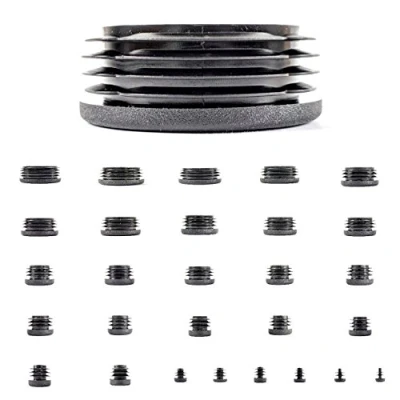 Ribbed plastic inserts for round tubes. MADE IN GERMANY Provides a smooth sliding surface to your tube ends. Finish off box section jobs or use as furniture sliders. Domestic and commercial use. Industrial shelving, metal frames, metal furniture, school chairs, stackable chairs etc… Please measure outer diameter of your tube. Suitable for tubes with a wall thickness of 1.5mm-2mm. Please see second image for measuring guide. Available in various sizes. Sold in packs of 4, 8, 12, 24, 36, 48, 100