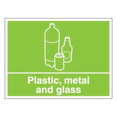 Landscape marker for Plastic / Metal / Glass (dry mixed recycling)—bottles, cans, jars and trays only to keep other waste out. Works with the UK Simpler Recycling scheme, standardising bin-bank labelling to reduce contamination and lift collection quality. Optimised for busy routes and benches—wide, left-to-right layout that’s easy to scan at the point of disposal. Crisp, high-visibility artwork with long-life print; suitable for walls, bin lids and recycling stations across multiple sizes and materials. 3mm Aluminium Composite – Tough, rustproof, and ideal for long-term indoor and outdoor use.