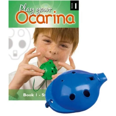 Plastic OCARINA set, Blue 4-hole, with Book 1