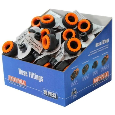 General description This Faithfull Plastic Tap Hose Connector adapts your threaded garden tap to accept standard quick-release push-fit hose fittings. It is suitable for use with 1/2 inch and 3/4 inch BSP threaded taps. Made from durable ABS plastic with a soft grip coating, it provides a comfortable, non-slip grip for easy connection and disconnection, even when wet. The male connector is compatible with all standard UK fittings. Technical specifications Material: Plastic (ABS) Type: Tap connector Compatible with: 1/2 inch and 3/4 inch BSP threaded taps Installation Attach the connector to your threaded garden tap by screwing it onto the BSP thread. Ensure it is tightened securely to prevent leaks. Usage Connect a standard garden hose or fitting to the quick-release end of the connector. Use the soft grip coating for easy handling, even when wet.
