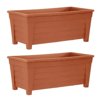 Plastic Trough Garden Planter Pots 55cm Length BROWN, Set of 2 Suitable for Indoor or Outdoor Use with DIY Drainage Holes.