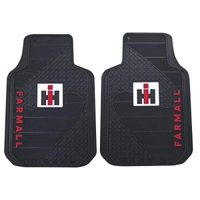 Molded-in Farmall International Harvester logo design floor mats Officially licensed product Constructed from durable PVC materials with molded-in colors Protects original interior carpets and easy to clean with soap and water Sold as a pair