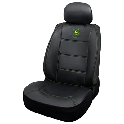 High Contrast Stitching and embroidered John Deere logo really stand out compared to other standard covers John Deere Official Licensed Product. Designed, manufactured and distributed by Plasticolor Inc. Our new Fastening system secures your new seat cover in just a minute or two with just 4 simple steps Plasticolor’s Patent Pending 3pc Universal fit design offers a great option for a wide variety of vehicles. Actual fit will vary depending on your year, make and model Easy to wipe clean polyvinyl surface. Comes with a built in Cargo Pocket on the back