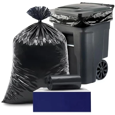 FITS 64-65 GAL TOTER CAN - Perfect fit for a 64-65 gallon Toter trash can. Extra large black garbage can liners, 50”W x 60”H. Use for outdoor rollaway garbage cans and drum cans. Bottom is a gusset seal. Bags come folded (50 Count). HEAVY DUTY - 2.0 MIL THICK - Strong enough to tolerate all residential household garbage and commercial waste. Made from industrial-strength low-density resins (thicker material). NO TEARS or LEAKS - Trash bag liner is durable and designed to hold the toughest garbage with absolutely no tears or leaks. Proudly made in the USA. SECURE TRASH BAG - Firmly secure trash bag in place with a rubber band (sold separately). Bag can then be reused for many garbage pickups. Alternatively, before pickup simply remove band and tie bag closed. KEEPS TRASH CAN 100% CLEAN - Garbage bag liners ensures can will remain totally clean inside. No more smell or dirt around your trash cans! Maintain your can in perfect brand new condition!