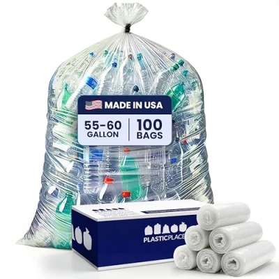 Plasticplace Clear 55 Gallon Trash Bags, 38x58, 100/Case, 1.2 Mil