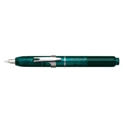 AmazonPlatinum Curidas is a retractable nib fountain pen that can be written on with a simple click. The term Curidas is skilful by combining two words: the Japanese term Curidasu, which means an extension of the tip of the pen, and the term "curiosity". This fountain pen is designed to meet people's curiosity. Retractable steel nib with F writing thickness (fine) The steel nib is closed in a special cap that allows the tip of the fountain pen to be insulated from air. Semi-transparent urban green