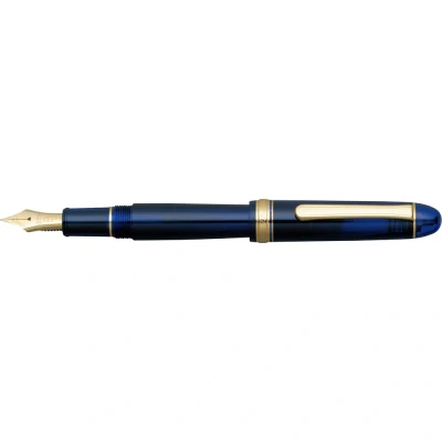 PLATINUM NB15000-51M Japanese Fountain Pen Collection 3776 Century Gold Trim Chartres Blue M/ Blue/ Medium - Line 0.34-0.44mm / Handmade/ 14K Gold Nib / Gift Boxed Ink. Dark blue Number of units: 1.0 The Century collection has an excellent reputation, among other things, thanks to its Slip & Seal mechanism, which prevents the ink from drying out in the fountain pen for up to two years, as well as thanks to its wide nib made of 14 carat gold and its classic, balanced and round shape The Century Collection #3776 was first introduced in 2012 and immediately gained great response among fountain pen lovers. For its functionality and design, the fountain pen has been awarded the Japanese award ISOT - 21st Stationary of the Year 2012. The fountain pen is slightly transparent Slip and Seal - Specially developed and patented cap prevents ink from drying out. Rotating cap. Semi-transparent resin barrel and cap Handmade 14k Gold Nib Gold-plated elements (clip, rings) Iridium nib tip Length 139.5mm (closed) Weight: 24.6 g. Includes blue-black cartridge The fountain pen is packed in an elegant box. Filling system: fountain pen cartridges - converter (variable piston cartridge system) optional, not included