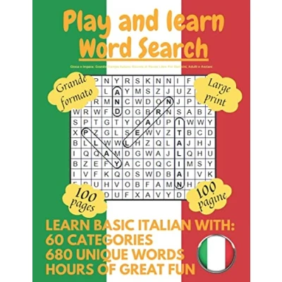 Play and learn: Large Print Italian Word Search Puzzle Book For Kids, Adults Seniors: 1