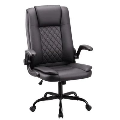 Play haha.Ergonomic Executive Office Chair with Flip Up Arms, High Back PU Leather Desk Thick Padded Seat, Rocking Function, Lumbar Support, Adjustable Height, Comfortable Home