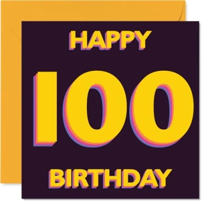 Playful 100th Birthday Card a Century of Cheers Bold Yellow and Purple 100 Design Festive Vibes for Huge Milestone 145mm Square, Envelope Included