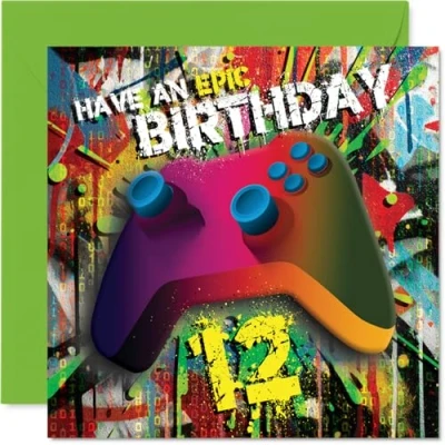 Brings a burst of excitement with its bold gaming controller set against a colourful, graffiti-style background-ideal for celebrating a milestone birthday with energy Features a lively and modern design, mixing playful street art vibes with a nod to gaming culture-sure to stand out amongst the usual birthday cards Made from gloss single sided board with uncoated inside-no smudging when writing inside, and crafted using FSC-certified board for peace of mind Blank inside so you can personalise your message, and comes complete with an envelope for easy gifting. The 145mm Square format is convenient to display or post Proudly printed in the UK on recyclable materials. this card is as thoughtful as it is fun-suits gamers of all sorts. from friends to nephews or colleagues