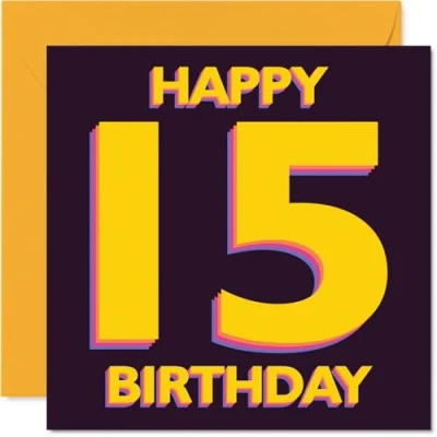 Captures the excitement of turning 15 with its vibrant yellow lettering that leaps off a rich purple background - a proper celebration in an Features a bold, modern number motif, perfect for marking this milestone birthday with a card that feels as special as the occasion. Recyclable; printed in UK for a considerate choice Crafted from glossy single-sided board with an uncoated inside. No smudging when writing inside, making your message clear and crisp. Printed on 360 micron stock for a confident, premium feel Blank inside, so you can pen your own wishes. Comes complete with a matching envelope for easy gifting. The 145mm Square format is convenient to display or post Made in the UK with FSC-certified and fully recyclable materials. Feel good sending a quality card that's kinder to the planet. Ideal for a mum or dad celebrating a milestone birthday