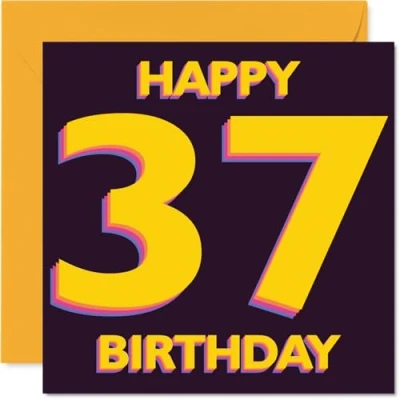 A lively way to mark turning 37, this card's bold yellow lettering leaps from the rich purple background for a real birthday wow-factor. Birthday card with a light-hearted design style Modern, minimalist design keeps it stylish-nothing fussy, just pure celebration in vivid colour that feels upbeat and fun. Recyclable; printed in UK for a considerate choice Printed on gloss single sided board with an uncoated inside-no smudging when writing inside, so your message stays crisp. Printed on 360 micron stock for a confident, premium feel Blank inside, offering plenty of space for your own wishes or a cheeky joke. Includes a matching envelope for easy gifting. The 145mm Square format is convenient to display or post Created in the UK using FSC-certified and fully recyclable materials. Designed to feel as good as it looks, every time. Ideal for a mum or dad celebrating a milestone birthday