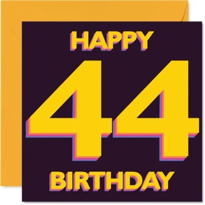 Playful 44th Birthday Card Bursting with Cheer Bold Yellow and Purple 'HAPPY 44 BIRTHDAY' Design Adds Instant Party Vibes 145mm Square, Envelope Included