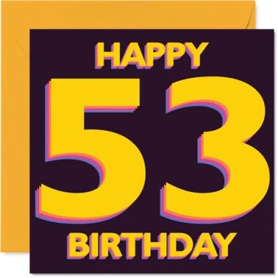 Playful 53rd Birthday Card Bold and Bright Vibes Striking Yellow 53 on Rich Purple A Standout Way to Mark the Big Year 145mm Square, Envelope Included
