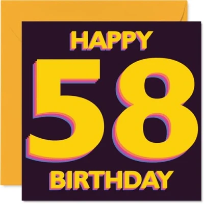 Playful 58th Birthday Card Bold and Bright Striking Yellow Purple 58 Motif A Standout Way to Mark Their Milestone 145mm Square, Envelope Included
